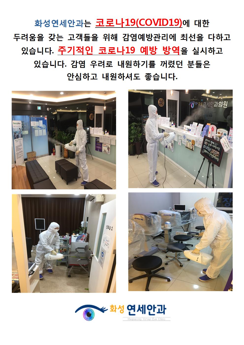 화성연세안과는 주기적인 코로나19 예방 방역을 실시하고 있습니다^^