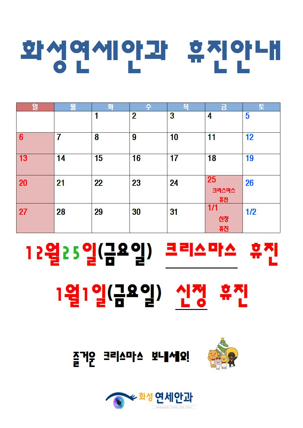 화성연세안과 12월, 1월 휴진안내입니다