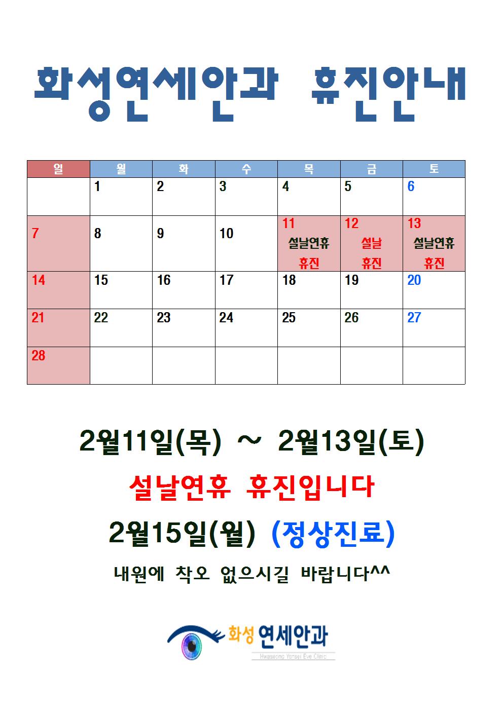 화성연세안과 2월 휴진안내입니다~^^