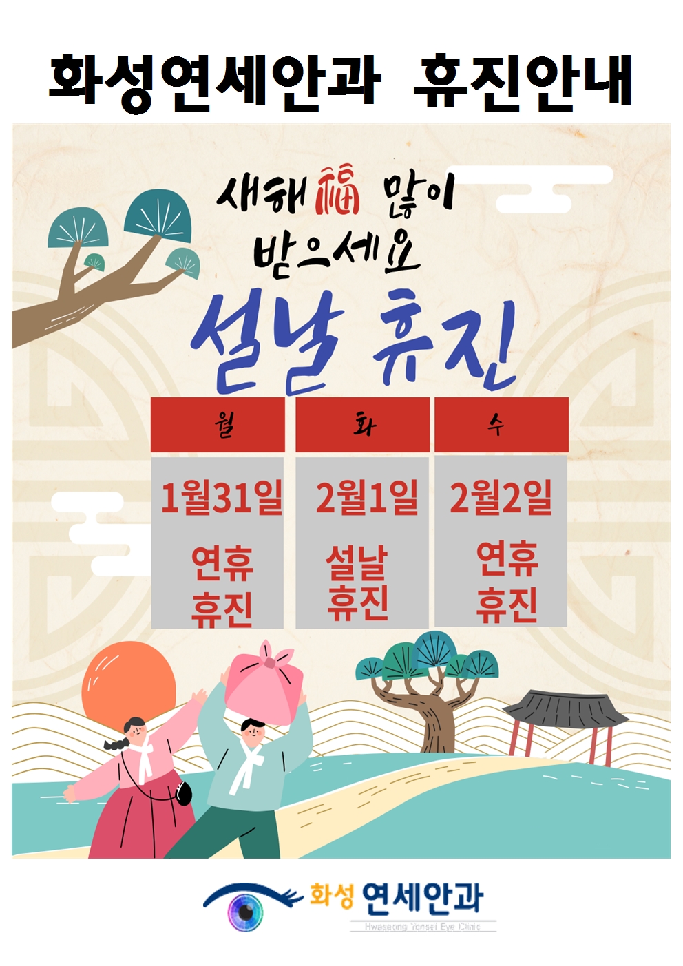 화성연세안과 설날 휴진안내입니다