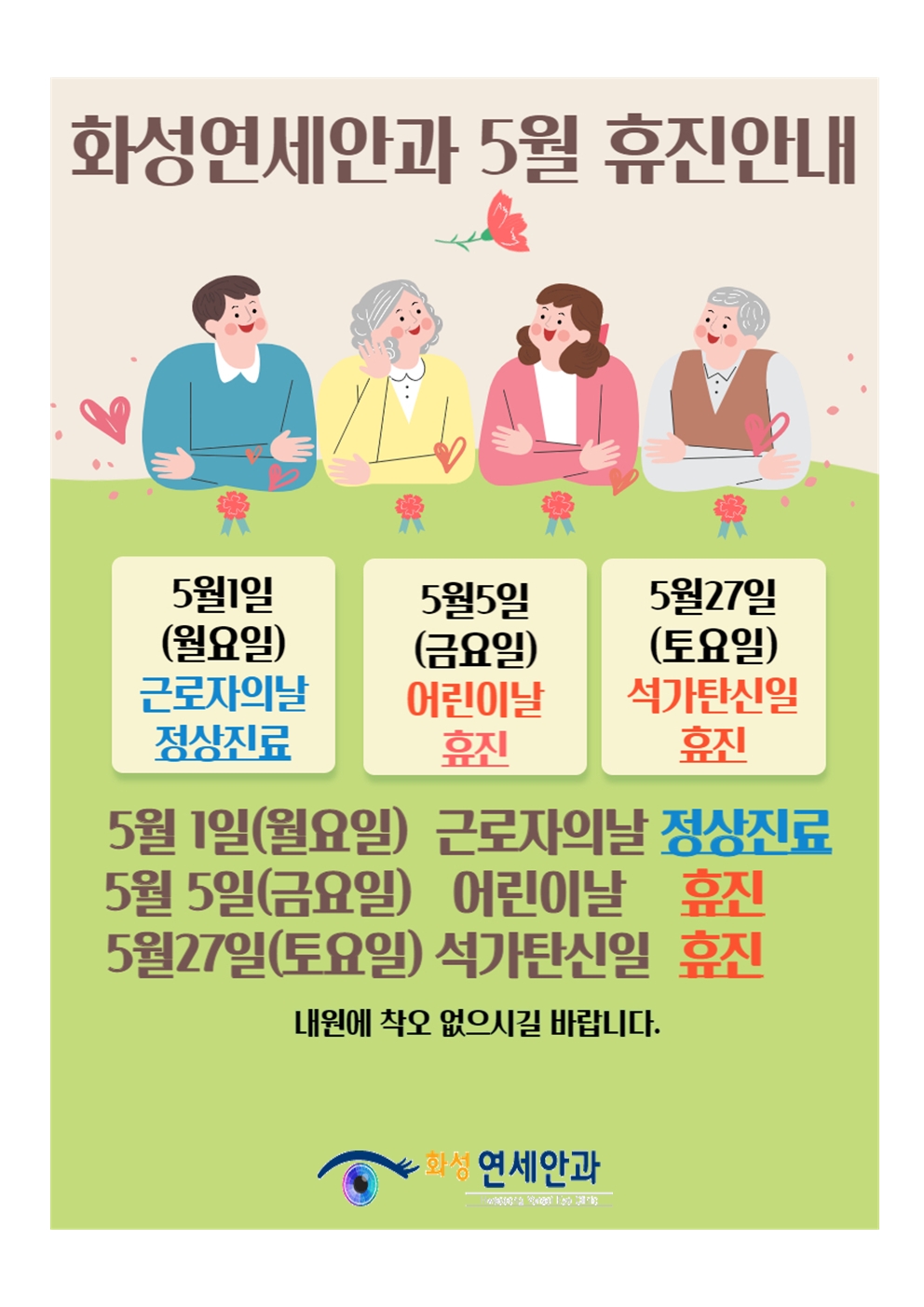 화성연세안과5월휴진안내